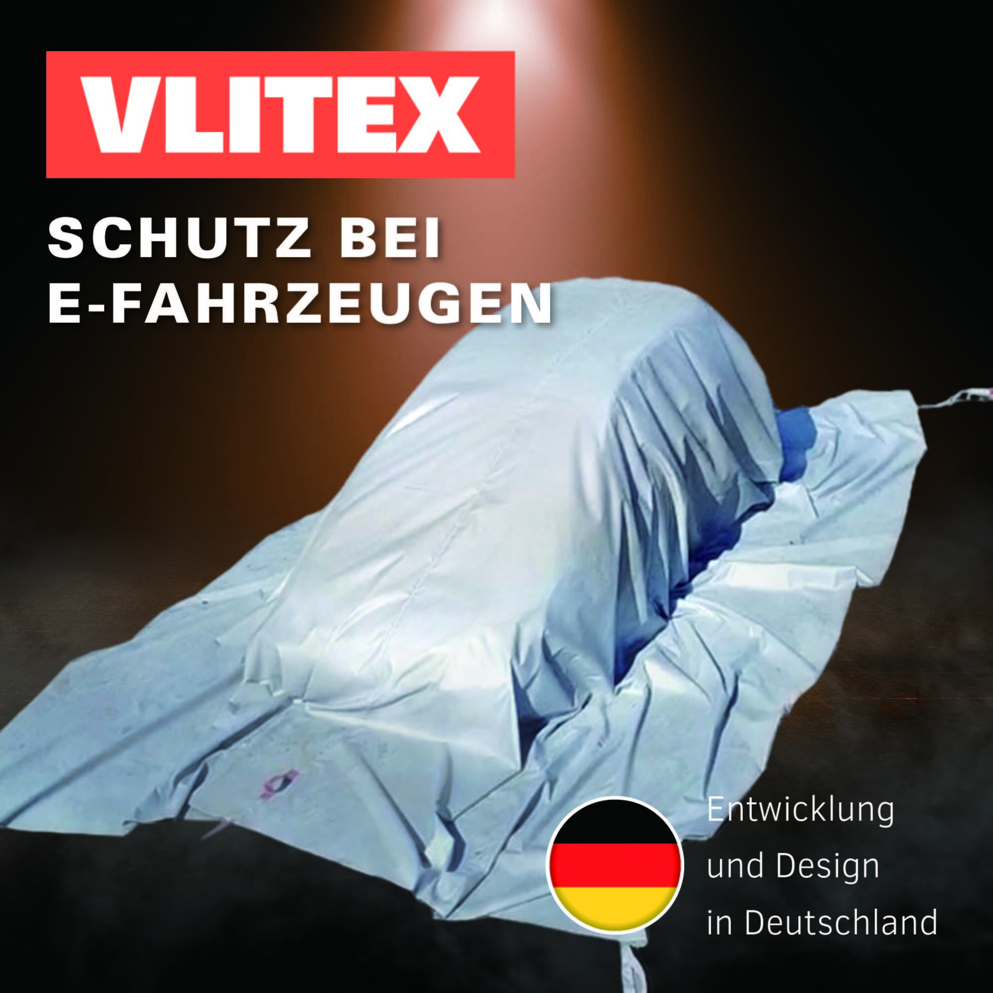 Tragen Sie beim Einsatz wenn möglich immer persönliche Schutzausrüstung. Bei Fahrzeugbränden sollte selbstverständlich immer die Feuerwehr zur Unterstützung gerufen werden. Einen Batteriebrand-Löschversuch mit der VLITEX Löschdecke finden Sie hier. Durch die Decke wird die Ausbreitung des Feuers auf umliegende Objekte verhindert, ein kontrolliertes Abbrennen bei reduzierter Umgebungstemperatur und minimaler Rauchentwicklung gewährleistet und der Handlungsspielraum der Feuerwehr vergrößert.