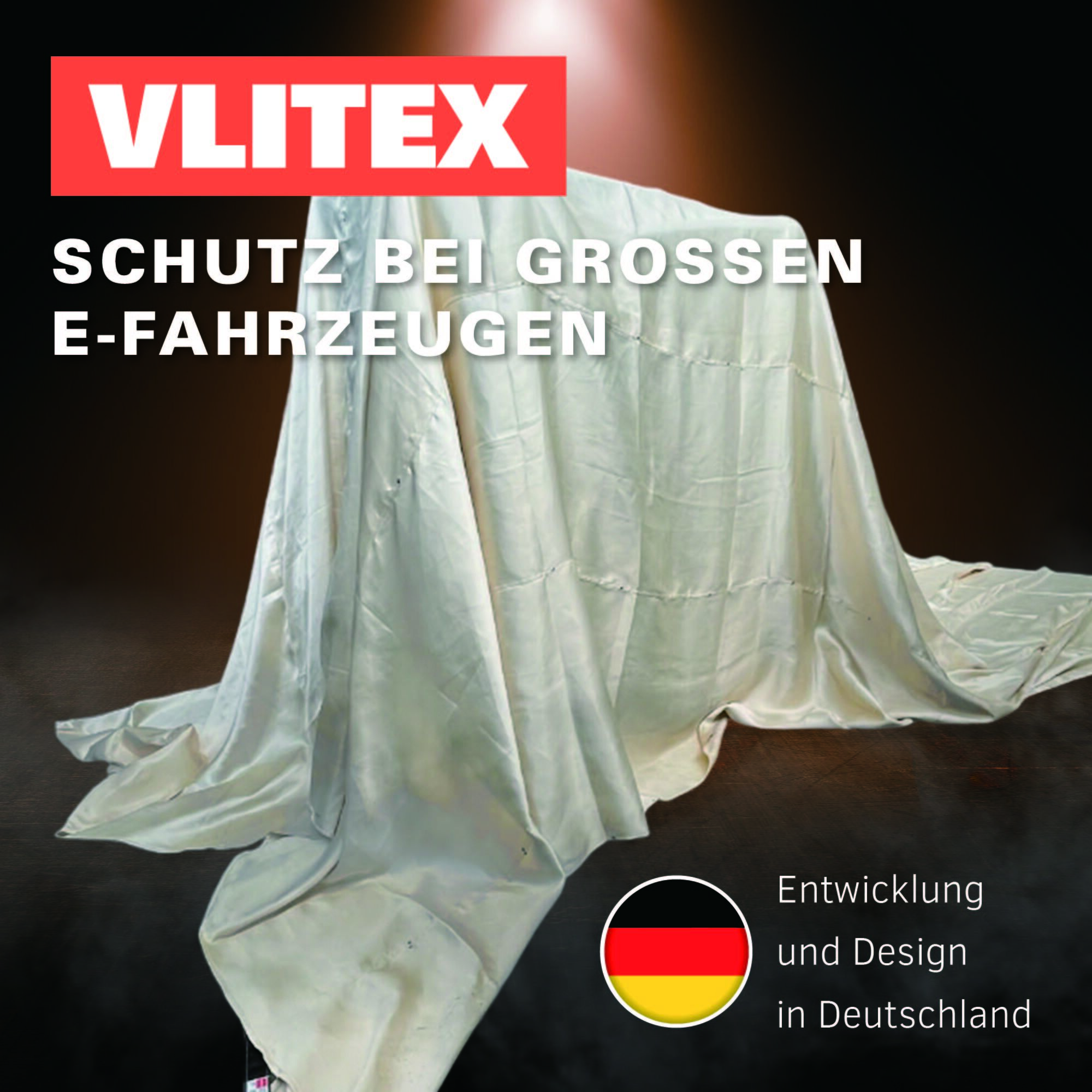 Tragen Sie beim Einsatz wenn möglich immer persönliche Schutzausrüstung. Bei Fahrzeugbränden sollte selbstverständlich immer die Feuerwehr zur Unterstützung gerufen werden. Einen Batteriebrand-Löschversuch mit der VLITEX Löschdecke finden Sie hier. Durch die Decke wird die Ausbreitung des Feuers auf umliegende Objekte verhindert, ein kontrolliertes Abbrennen bei reduzierter Umgebungstemperatur und minimaler Rauchentwicklung gewährleistet und der Handlungsspielraum der Feuerwehr vergrößert.