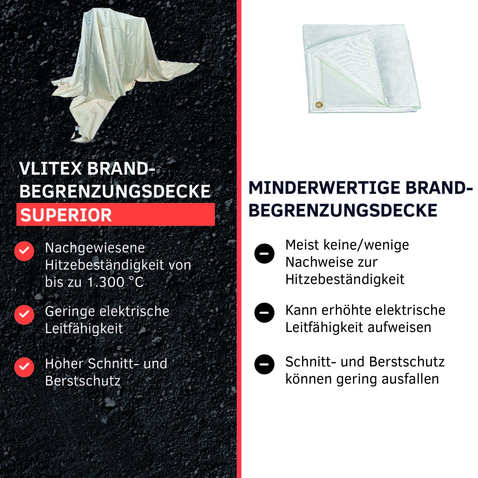 VLITEX arbeitet seit über 20 Jahren im Markt für technische Textilien. Durch die Entwicklung von innovativen Produkten aus technischem Glas entstanden die VLITEX Löschdecken. Durch ein Spezial-Glasfasergewebe wird die Sauerstoffzufuhr unterbunden. Somit wird unter der Löschdecke / Brandschutzdecke das Feuer erstickt, oder bei Batteriebränden kontrolliert gehalten. Zusätzlich wird sowohl die Umgebungstemperatur, sowie die Rauchentwicklung erheblich reduziert. Alle VLITEX Feuerlöschdecken sind umweltfreundlich, ressourcenschonend, wartungsfrei, temperatur-, witterungs- und hitzebeständig.