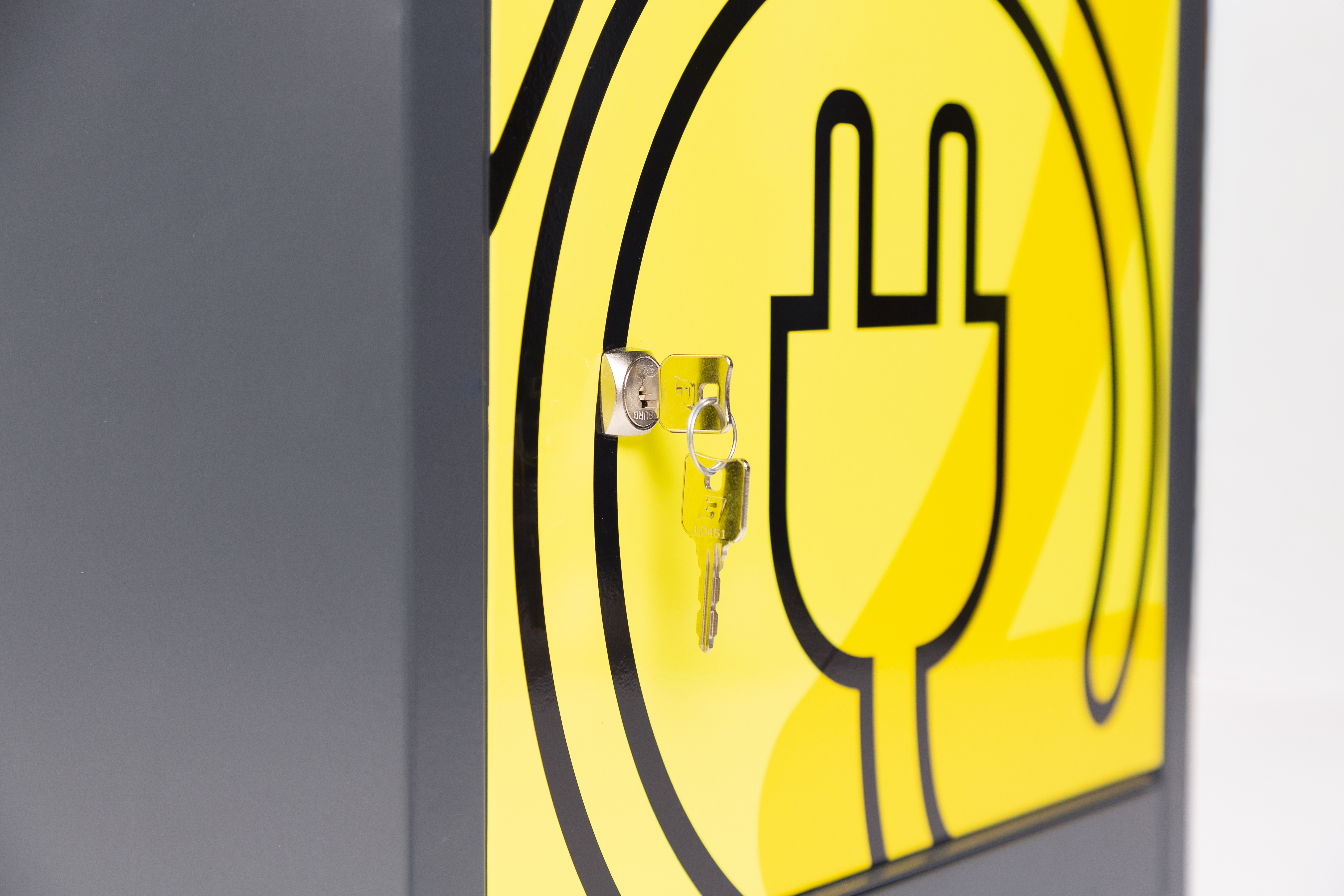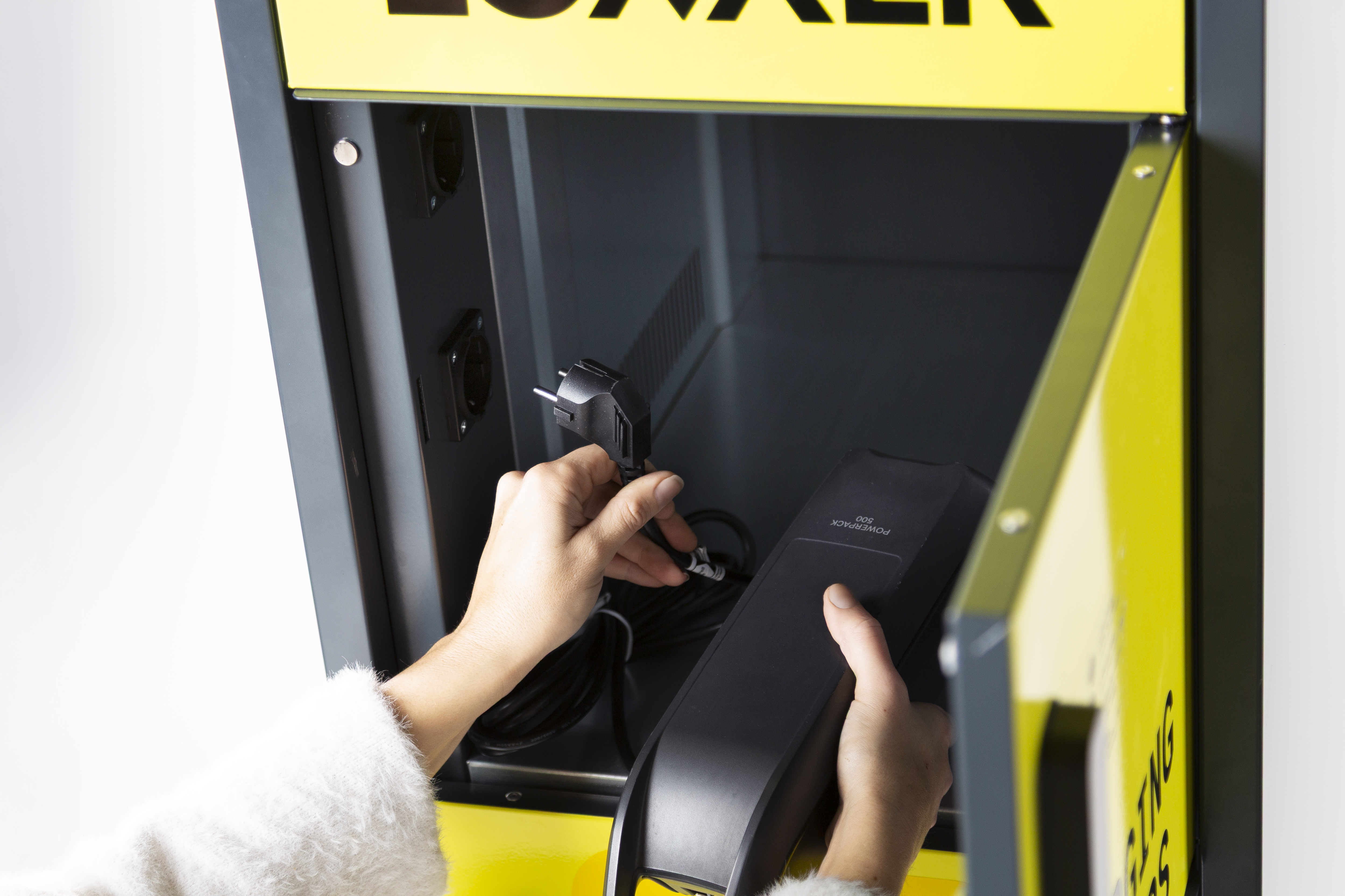 Der OUTDOOR Locker ist eine wetterbeständige Lösung für die Lagerung und das Laden von Lithium-Ionen-Batterien im Außenbereich. Durch die robuste Konstruktion aus verzinktem Stahl mit UV-beständiger Pulverbeschichtung, vier Ladefächer, integrierte Belüftungselemente sowie optionale Sicherheits- und Löschsysteme eignet sich der Schrank optimal für den Einsatz beispielsweise an Fahrrad- und E-Scooter-Abstellplätzen.