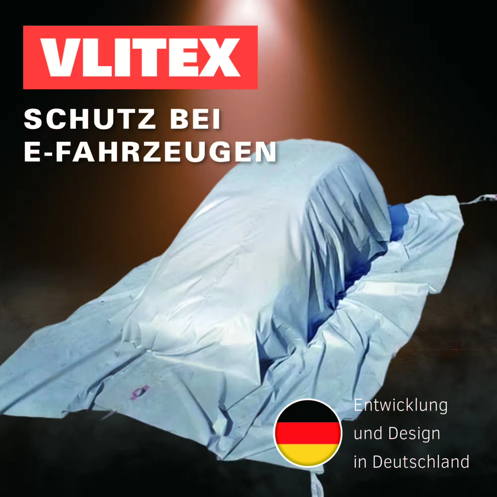 Die VLITEX Brandbegrenzungsdecke PREMIUM (im Folgenden synonym auch als Löschdecke oder Brandschutzdecke bezeichnet) ist für die Abdeckung von beschädigten oder brennenden (E-)Fahrzeugen und Geräten mit Lithium-Ionen-Akkus konzipiert. Sie dient dazu, Flammen unter der Decke bestmöglich zu isolieren, die Ausbreitung von Rauch und toxischen Gasen zu reduzieren, die Temperatur zu senken und Explosionen unter der Decke zu begrenzen.