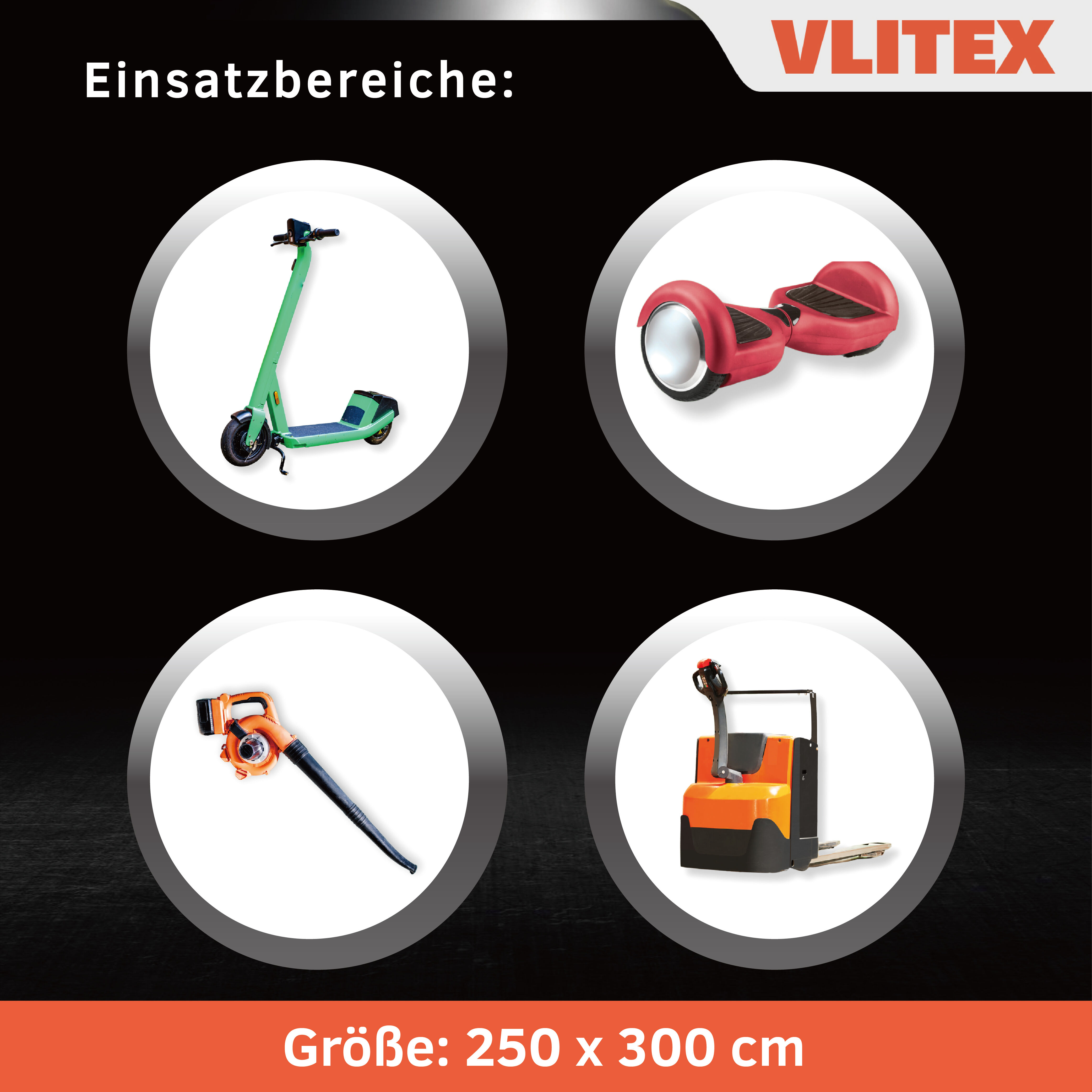 Die VLITEX Brandbegrenzungsdecke PREMIUM (im Folgenden synonym auch als Löschdecke oder Brandschutzdecke bezeichnet) ist für die Abdeckung von beschädigten oder brennenden (E-)Fahrzeugen und Geräten mit Lithium-Ionen-Akkus konzipiert. Sie dient dazu, Flammen unter der Decke bestmöglich zu isolieren, die Ausbreitung von Rauch und toxischen Gasen zu reduzieren, die Temperatur zu senken und Explosionen unter der Decke zu begrenzen.