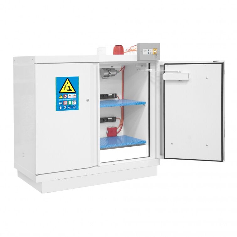 Lithium-ion batteries will be indispensable in all industrial applications in the coming years. However, if used improperly, batteries can pose a potential hazard during production, storage and transportation that should not be underestimated. By purchasing a suitable safety cabinet, you can protect yourself from the outset against major financial losses that can be caused by battery fires, for example.