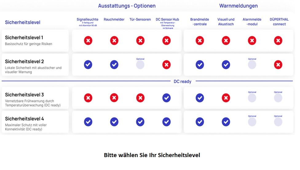 This increases safety in your business, improves processes and ensures maximum efficiency and control. Only safety levels 3 and 4 are prepared for Düperthal Connect. This system is primarily useful if a large number of lithium-ion batteries or cabinets are to be managed. The functions of Düperthal connect are extensive. Please contact us for more information.
