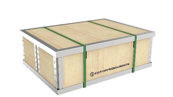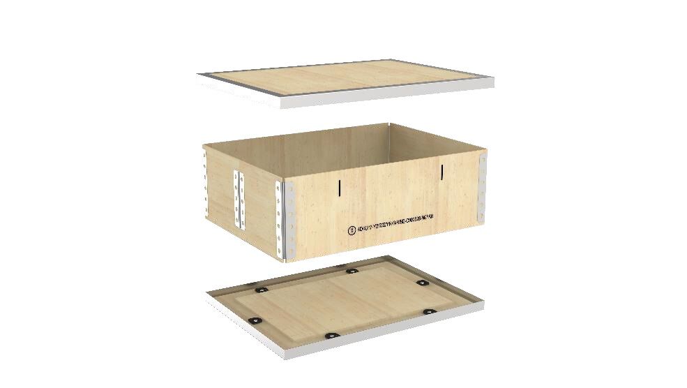 The box is a reusable plywood box. When the box is not in use, it is foldable and can be easily stored. Experience has shown that the packaging can be used for approx. 100 cycles, depending on the application.