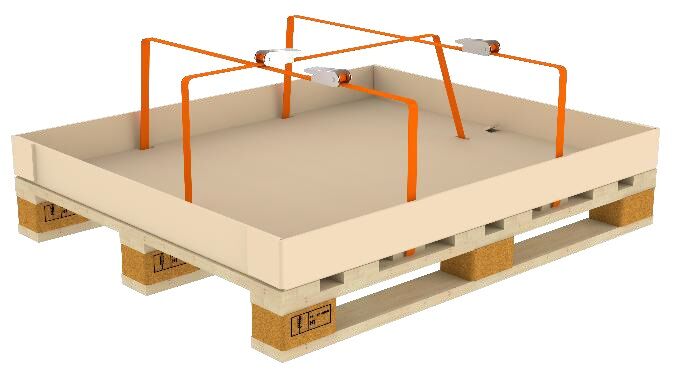 The battery to be packed can be secured using 3 tension straps. There are 6 fastening slots for this purpose. The battery can be secured using either 25 mm/800 daN or 35 mm/2000 daN tension straps. These are not included with the box, but can be ordered as accessories!