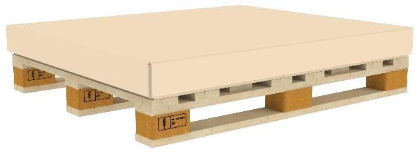 The corrugated cardboard transport container has external dimensions of approx. 1220 x 1020 x 715 mm (LxWxH). The interior dimensions of the box are 1144 x 972 x 550 mm (LxWxH). The usable interior dimensions are approx. 1140 x 960 x 500 mm. When folded, the height is approx. 265 mm. The transport container weighs approx. 35 kg. The maximum permissible total weight is 536 kg. The base frame can be driven in on all four sides by industrial trucks. The container is stackable up to a maximum load of 693 kg static and 536 kg dynamic.