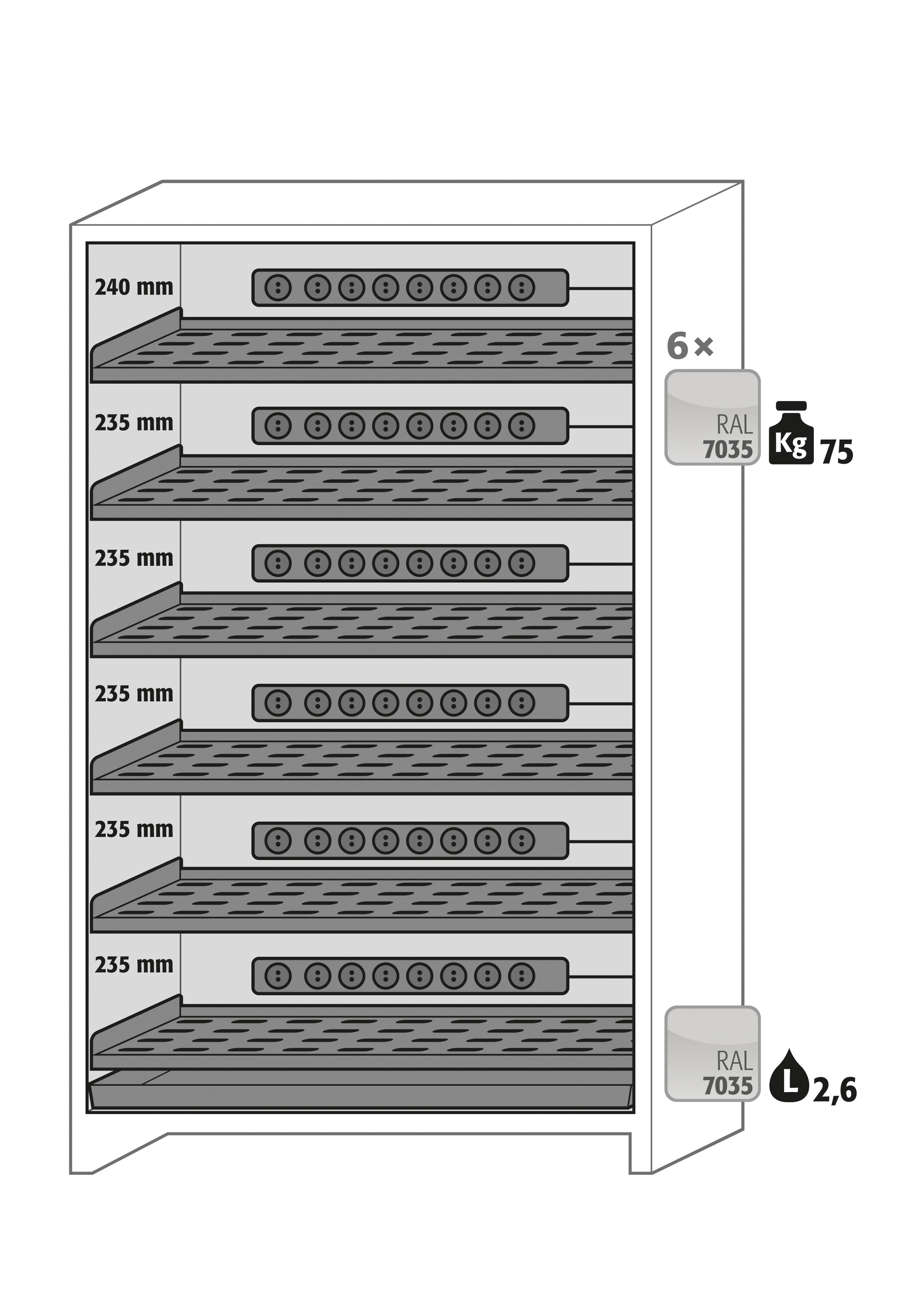 Thanks to thermally insulated shelves, integrated ventilation, and optional fire suppression, the cabinet is suitable for professional applications in industry, workshops and technical areas.